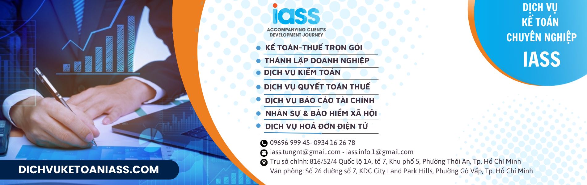 DỊCH VỤ KẾ TOÁN IASS - Đồng hành cùng sự phát triển doanh nghiệp IASS là Công ty cung cấp dịch vụ kế toán – thuế chuyên nghiệp với đầy đủ năng lực chuyên môn theo yêu cầu, quy định của Bộ Tài chính. Với kim chỉ nam “Đồng hành cùng sự phát triển doanh nghiệp” luôn nhắc nhở chúng tôi phải không ngừng hoàn thiện dịch vụ để luôn làm hài lòng khách hàng.