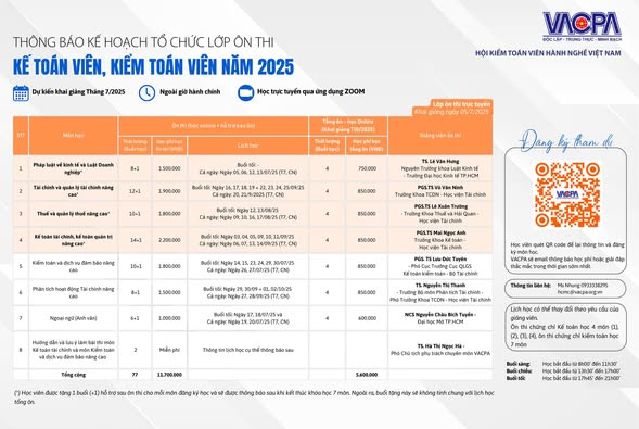 Để biết thêm thông tin về quyền lợi và ưu đãi cho các học viên năm 2025, vui lòng xem thông tin chi tiết tại Website: https://vacpa.org.vn/…/vacpa-thong-bao-ke-hoach-lop-on…